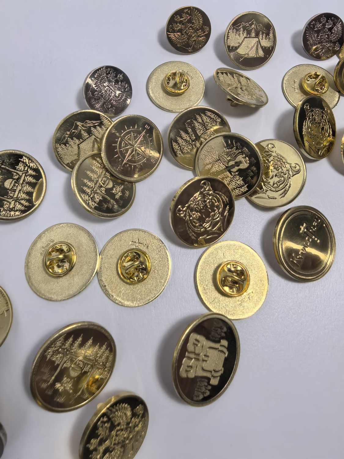 Мы производим значки из латуни и нейзильбера, чеканкой (штамповка) и лазерной гравировкой.